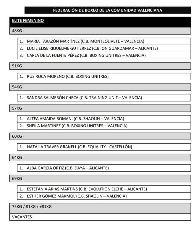 Estos son los inscritos en todas las categorías y pesos: