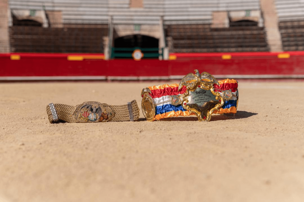 DIA DEL CENTENARI DE LA FEDERACIÓ DE BOXEIG DE LA COMUNITAT VALENCIANA. ELS CINTURONS DE CAMPIÓ DEL MÓN I DE LA REVISTA THE RING DE SANGCHILI, EN LA PLAÇA DE BOUS DE VALÈNCIA, L’ESCENARI ON ESPANYA VA OBTINDRE EL PRIMER CAMPIONAT DEL MÓN.