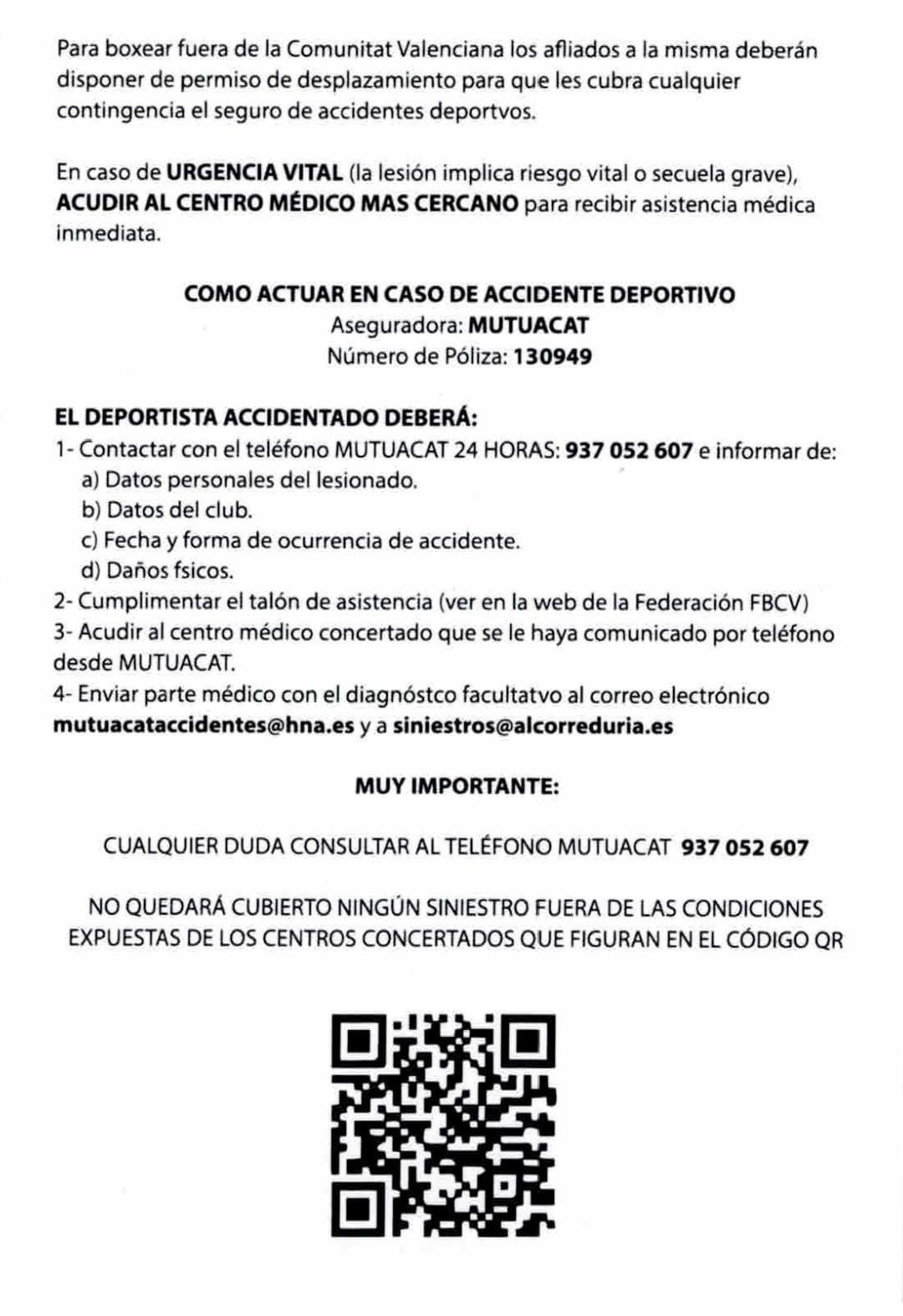 1.1. Hay que rellenar debidamente el documento de comunicación de accidentes, que deberá ser firmado y sellado por la federación, club o entidad deportiva correspondiente.