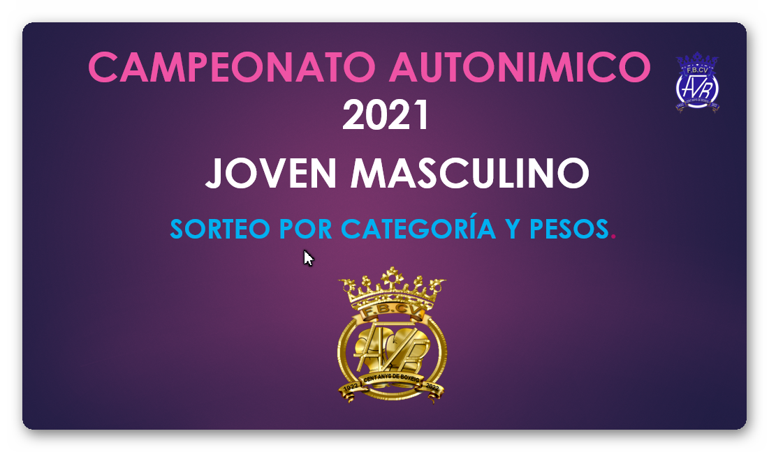 Estos son los cuadros del sorteo del Campeonato Autonómico 2021, celebrado el 20 de marzo en Albuixech. Se recuerda, que en aquellos pesos donde solo hay uno o dos inscritos, no se realizó sorteo como es lógico. Todos los boxeadores aparecen en el listado definitivo (pinchar aquí).