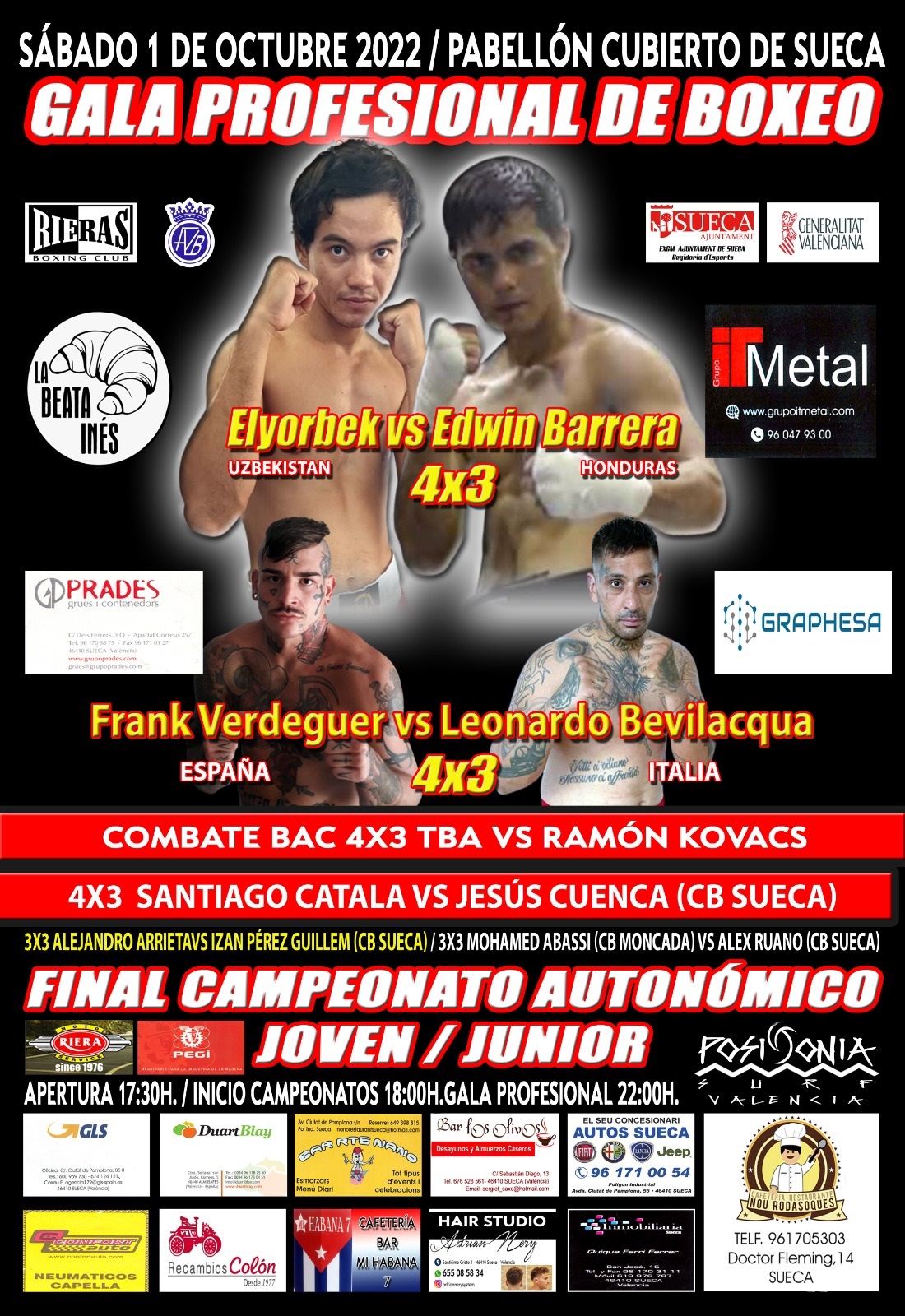 Direcció: Pavelló Cobert de Sueca, Ronda del País Valencia, 23, 46410 Sueca, Valencia